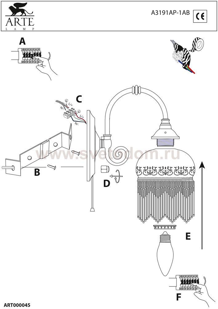 Светильник бра Arte Lamp A3191AP-1AB Victoriana сделает Ваш интерьер современным, стильным и запоминающимся! Наиболее функционально и эстетически привлекательно модель будет смотреться в гостиной, зале, холле или другой комнате. А в комплекте с люстрой и торшером из этой же коллекции сделает интерьер по-дизайнерски профессиональным и законченным.