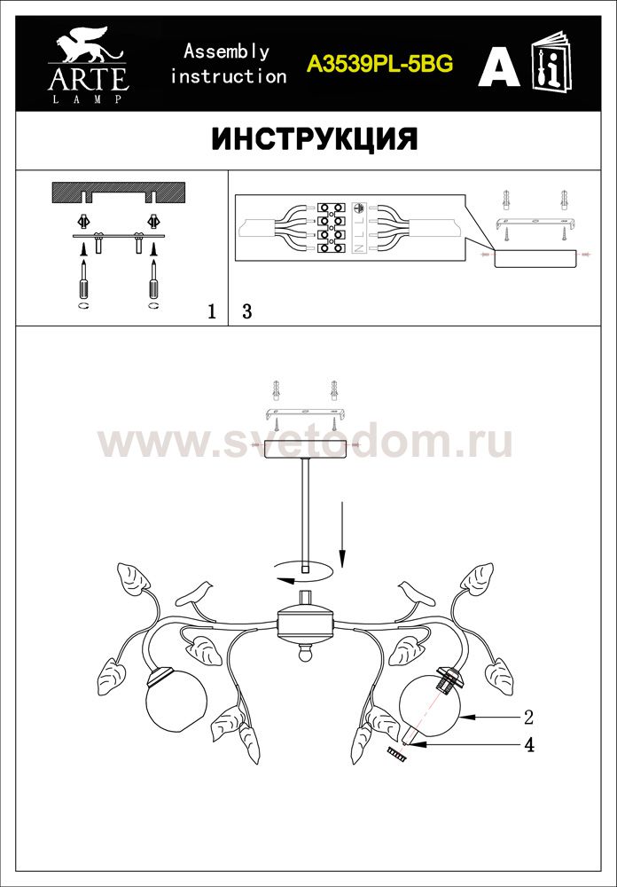 Нежная красота подвесной люстры Arte Lamp A3539РL-5BG очаровывает и покоряет с первого взгляда. Выполненная в стиле «флористика», она станет прекрасным украшением Вашего интерьера! Каждый элемент в ней тщательно продуман и великолепно сочетается с остальными деталями конструкции, создавая изысканный образ, напоминающий вьющийся кустарник с белыми «бутонами». Наиболее функционально люстра будет выглядеть в комнате с площадью до 14 кв.м. и высоким потолком. Рекомендуем Вам дополнительно использовать все виды светильников из этой серии (бра, торшер, настольную лампу), чтобы интерьер стал уютным, гармоничным и «цельным».
