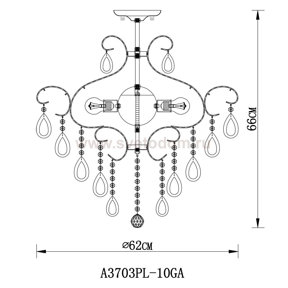 Светильник Arte Lamp A3703PL-10GA сделает Ваш интерьер современным, стильным и запоминающимся! Наиболее функционально и эстетически привлекательно модель будет смотреться в гостиной, зале, холле или другой комнате. А в комплекте с настенными бра и торшером из этой же коллекции, сделает интерьер по-дизайнерски профессиональным и законченным.