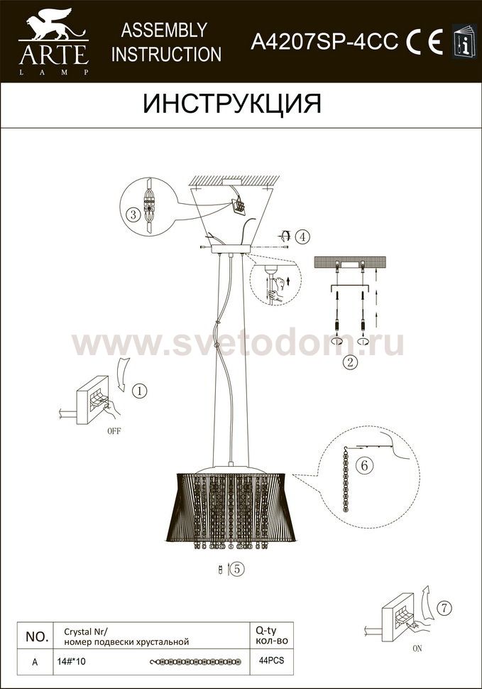 Светильник подвесной хрустальный Arte lamp A4207SP-4CC Incanto