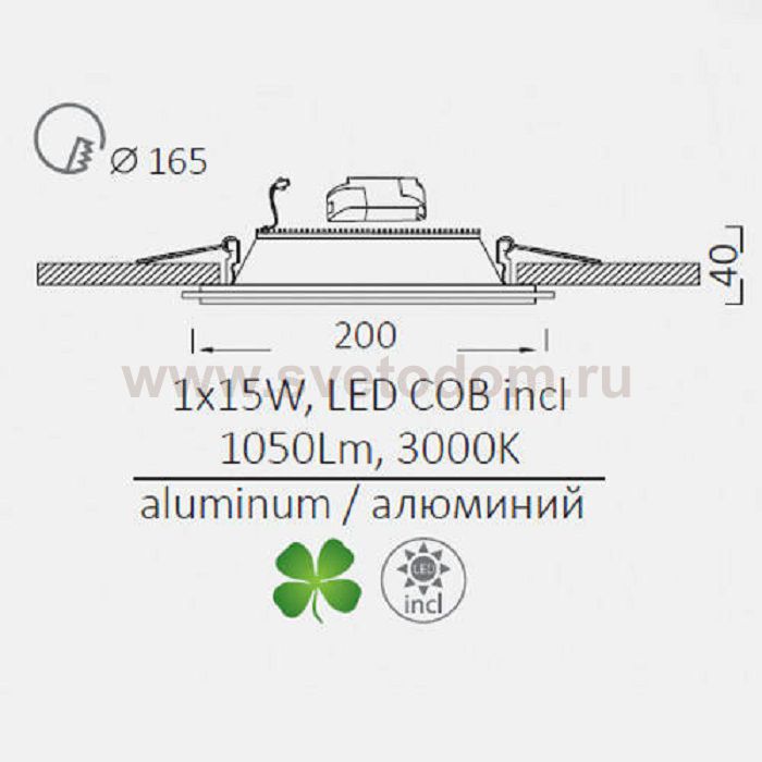 Данный размер указывает какое отверстие необходимо сделать для правильного монтажа. Зачастую светильники выбирают после ремонта и сделанных монтажных отверстий, тогда подбор осуществляется строго в размер +/- 2-5мм.