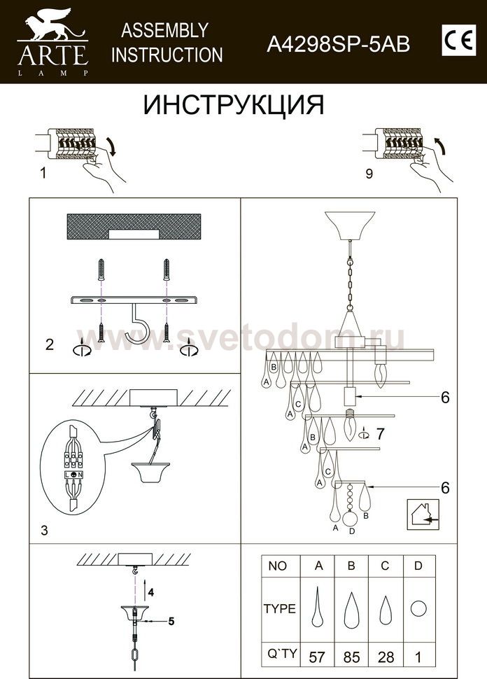 15 Отзывы Светильник подвесной Arte lamp A4298SP-5AB ReginaПока нет отзывов об этом товаре, напишите и он обязательно появится после модерации! Оставить свой отзывПохожие товары Другие товары магазина Фото
