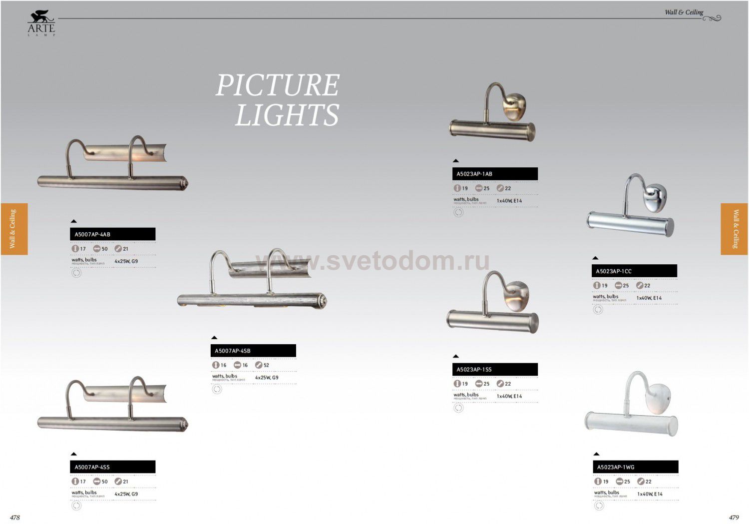 Светильник настенный Arte lamp A5023AP-1CC Picture light сделает Ваш интерьер современным, стильным и запоминающимся! Наиболее функционально и эстетически привлекательно модель будет смотреться в гостиной, зале, холле или другой комнате. А в комплекте с люстрой и торшером из этой же коллекции сделает интерьер по-дизайнерски профессиональным и законченным.