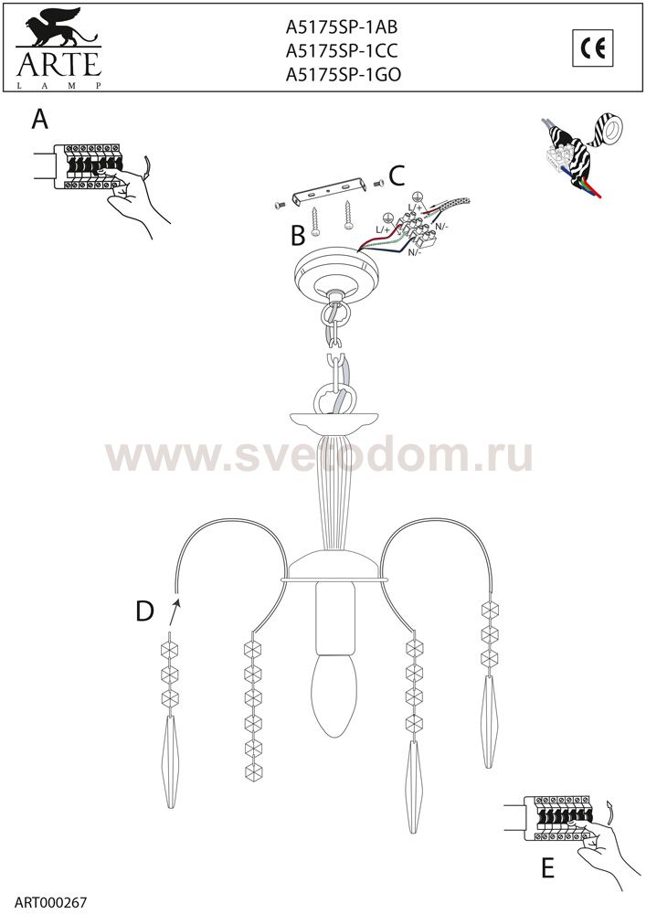 Дополнительно рекомендуем посмотреть другие хрустальные люстры и светильники из данной серии. Модель - Светильник подвесной Arte lamp A5175SP-1AB замечательно впишется в задуманный Вами интерьер зала, гостиной или спальни. Купите хрустальную люстру уже сегодня и Вы поймете превосходство светильников перед другими направлениями освещения. Основное превосходство хрусталя - это отражение и преломление света во всем пространстве, а отсутствие абажуров не съест получаемый световой поток от горящих ламп!