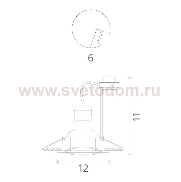Данный размер указывает какое отверстие необходимо сделать для правильного монтажа. Зачастую светильники выбирают после ремонта и сделанных монтажных отверстий, тогда подбор осуществляется строго в размер +/- 2-5мм.