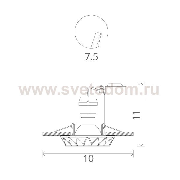 Данный размер указывает какое отверстие необходимо сделать для правильного монтажа. Зачастую светильники выбирают после ремонта и сделанных монтажных отверстий, тогда подбор осуществляется строго в размер +/- 2-5мм.