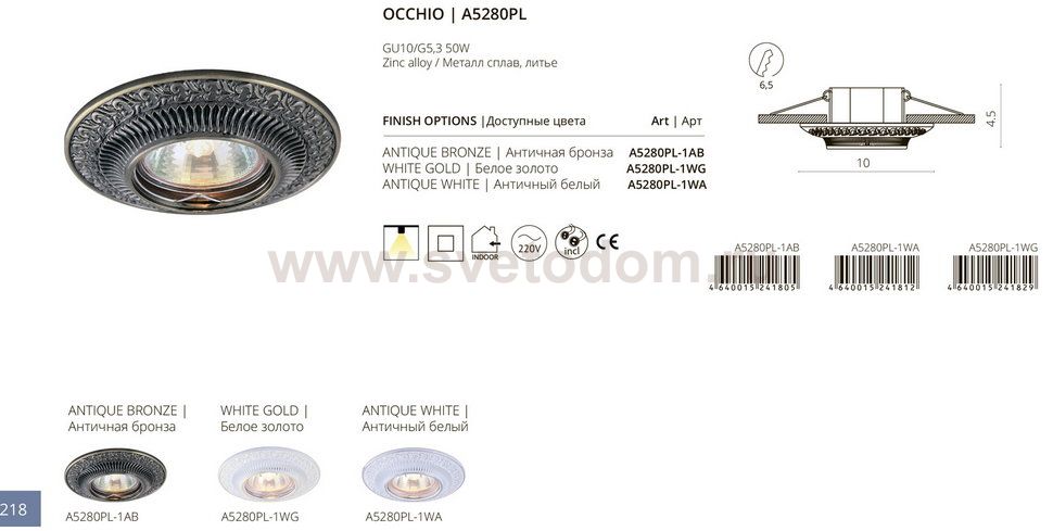 Интернет-магазин «Светодом» предлагает стильный встраиваемый светильник ARTE Lamp A5280PL-1AB. Данная модель достаточно универсальна, поэтому подойдет практически под любой интерьер. Перед покупкой не забудьте ознакомиться с техническими параметрами, чтобы узнать тип цоколя, площадь освещения и другие важные характеристики.