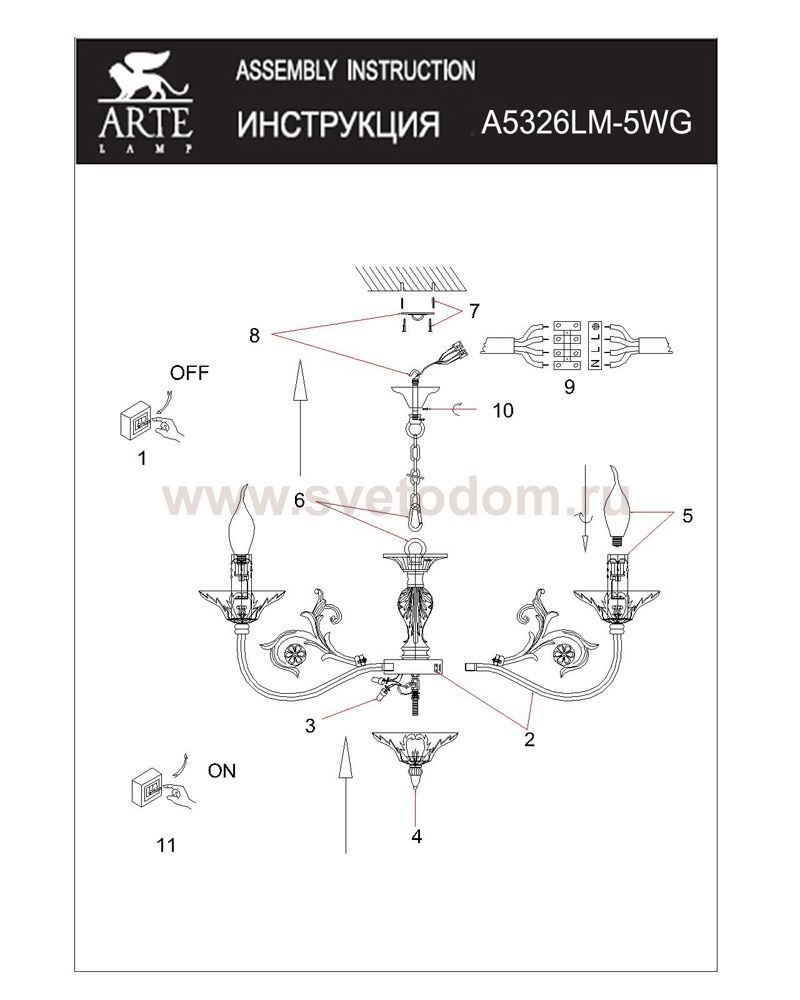 Стильная люстра Arte lamp A5326LM-5WG станет украшением любого дома. Эта модель от известного производителя не оставит равнодушным ценителей красивых и оригинальных предметов интерьера. Люстра Arte lamp A5326LM-5WG обеспечит равномерное распределение света по всей комнате. При выборе обратите внимание на характеристики, позволяющие приобрести наиболее подходящую модель.