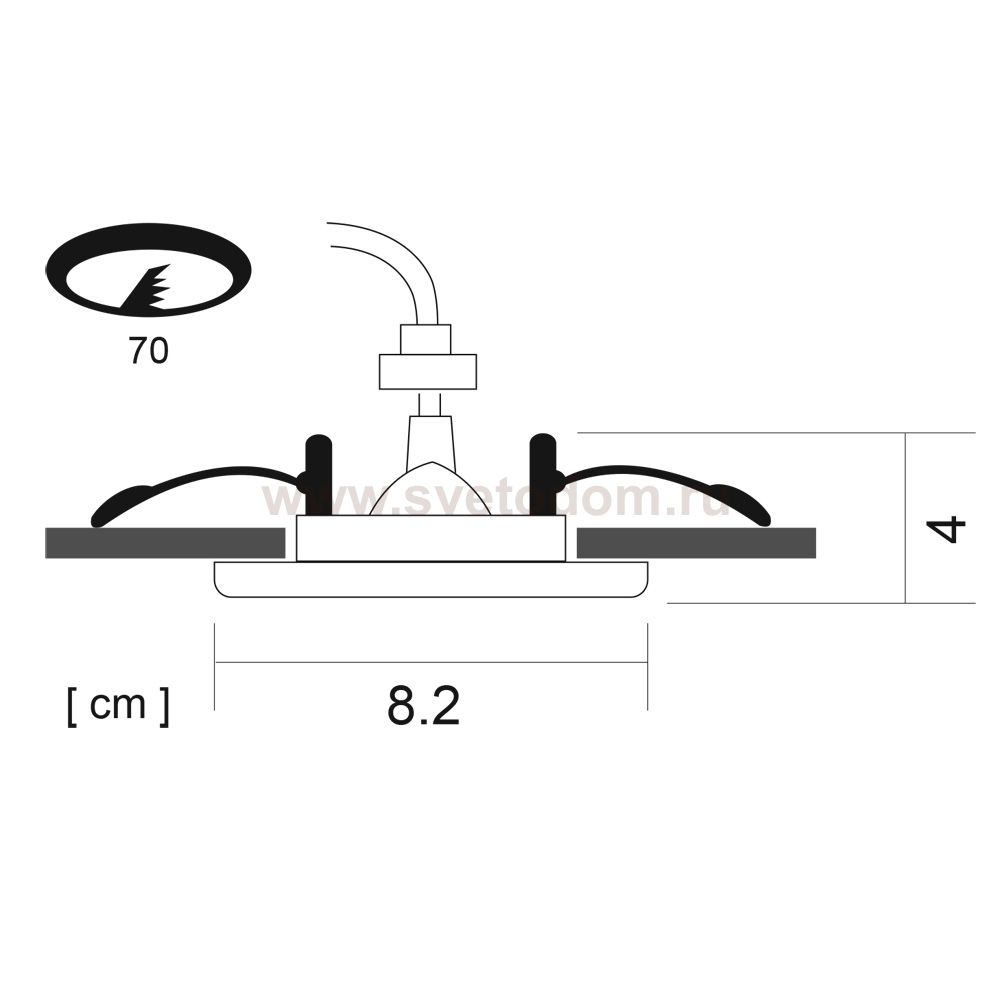 Данный размер указывает какое отверстие необходимо сделать для правильного монтажа. Зачастую светильники выбирают после ремонта и сделанных монтажных отверстий, тогда подбор осуществляется строго в размер +/- 2-5мм.