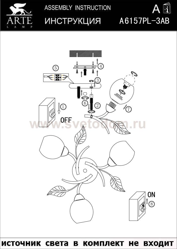 Отличную модель светильника Arte lamp A6157PL-3AB из серии ANETTA производства Италии возможно купить оптом и в розницу на официальном сайте интернет-магазина Светодом.