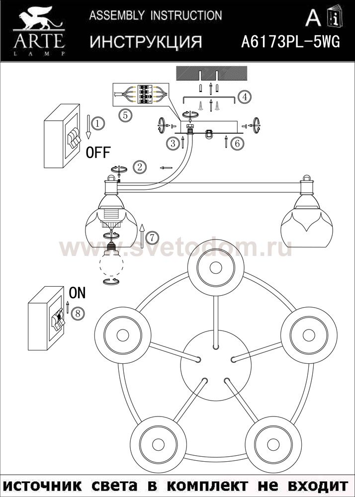 Отличную модель светильника Arte lamp A6173PL-5WG из серии DANIELLA производства Италии возможно купить оптом и в розницу на официальном сайте интернет-магазина Светодом.