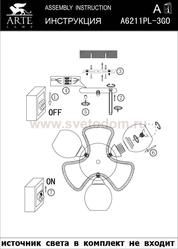 Отличную модель светильника Arte lamp A6211PL-3GO из серии COSETTA производства Италии возможно купить оптом и в розницу на официальном сайте интернет-магазина Светодом.