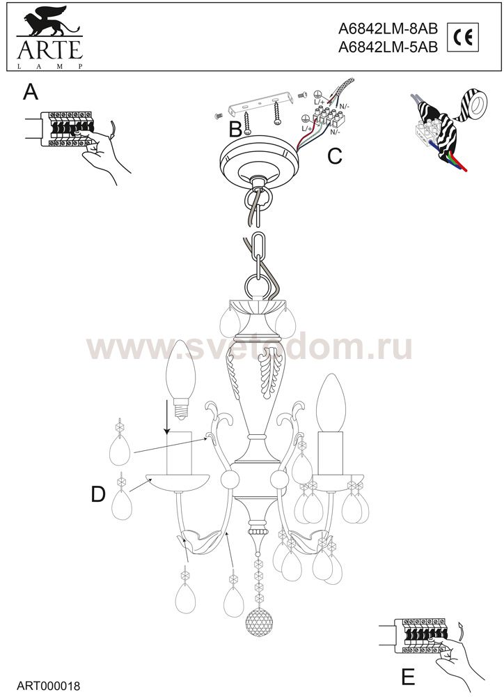 Дополнительно рекомендуем посмотреть другие хрустальные люстры и светильники из данной серии. Модель - люстры Arte Lamp A6842LM-8AB замечательно впишется в задуманный Вами интерьер зала, гостиной или спальни. Купите хрустальную люстру уже сегодня и Вы поймете превосходство светильников перед другими направлениями освещения. Основное превосходство хрусталя - это отражение и преломление света во всем пространстве, а отсутствие абажуров не съест получаемый световой поток от горящих ламп!