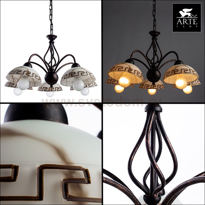 57 Отзывы Люстра греческая Arte lamp A6884LM-5BR RUSTICAПока нет отзывов об этом товаре, напишите и он обязательно появится после модерации! Оставить свой отзывПохожие товары Другие товары магазина Фото