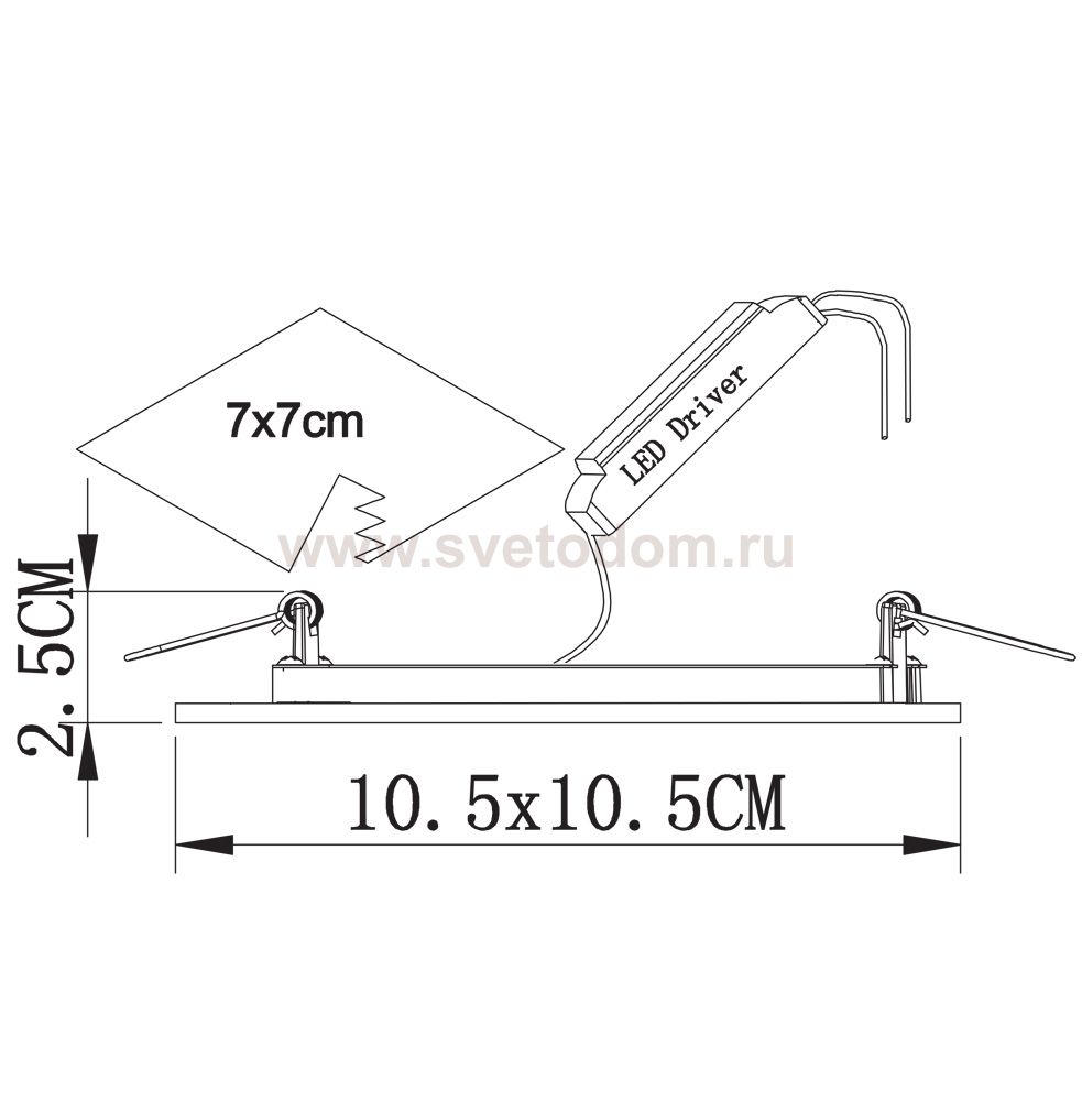 Данный размер указывает какое отверстие необходимо сделать для правильного монтажа. Зачастую светильники выбирают после ремонта и сделанных монтажных отверстий, тогда подбор осуществляется строго в размер +/- 2-5мм.