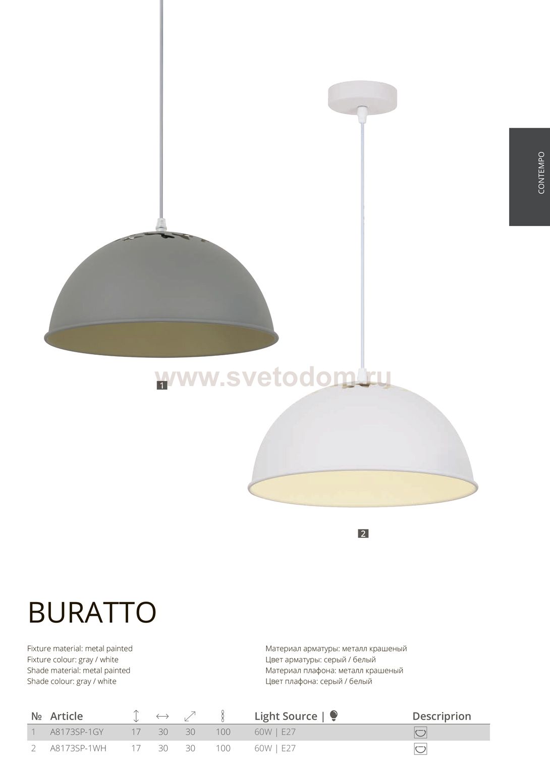 Светильник подвесной Arte lamp A8173SP-1WH Buratto отличается регулировкой по высоте и сделает Ваш интерьер современным, стильным и запоминающимся! Наиболее функционально и эстетически привлекательно модель будет смотреться в гостиной, зале, холле или другой комнате. А в комплекте с люстрой, бра или торшером из этой же коллекции сделает ремонт по-дизайнерски профессиональным и законченным.