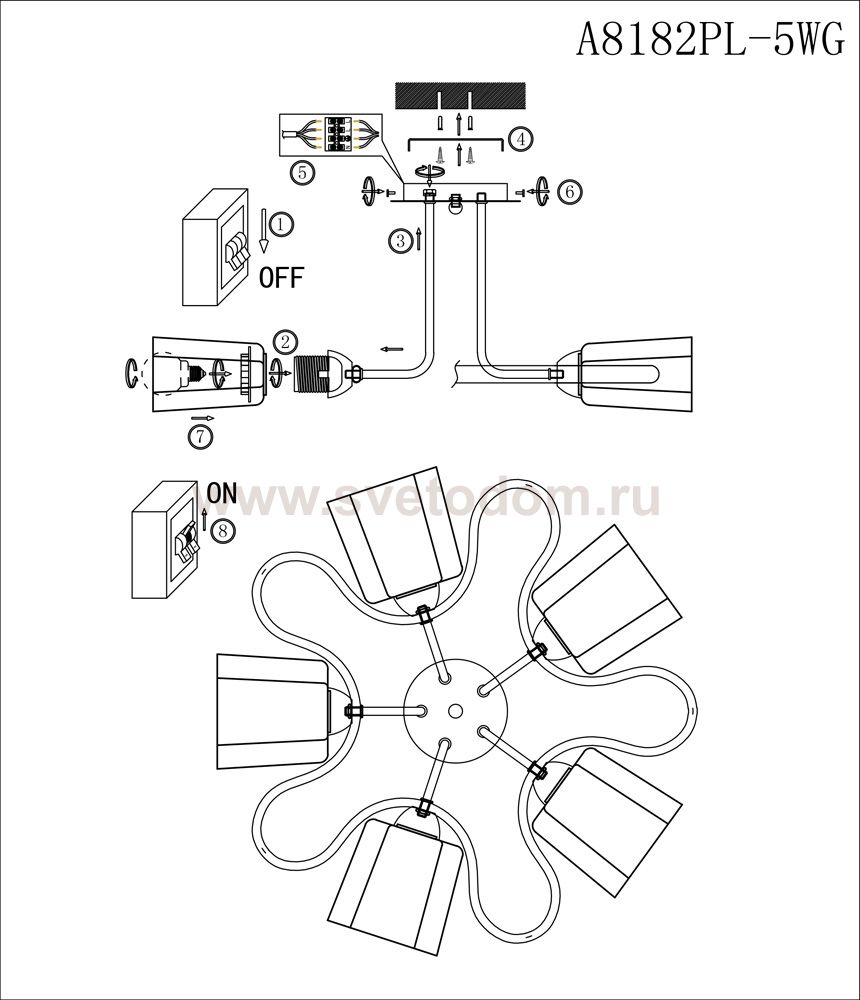 Отличную модель светильника Arte lamp A8182PL-5WG из серии ROMOLA производства Италии возможно купить оптом и в розницу на официальном сайте интернет-магазина Светодом.