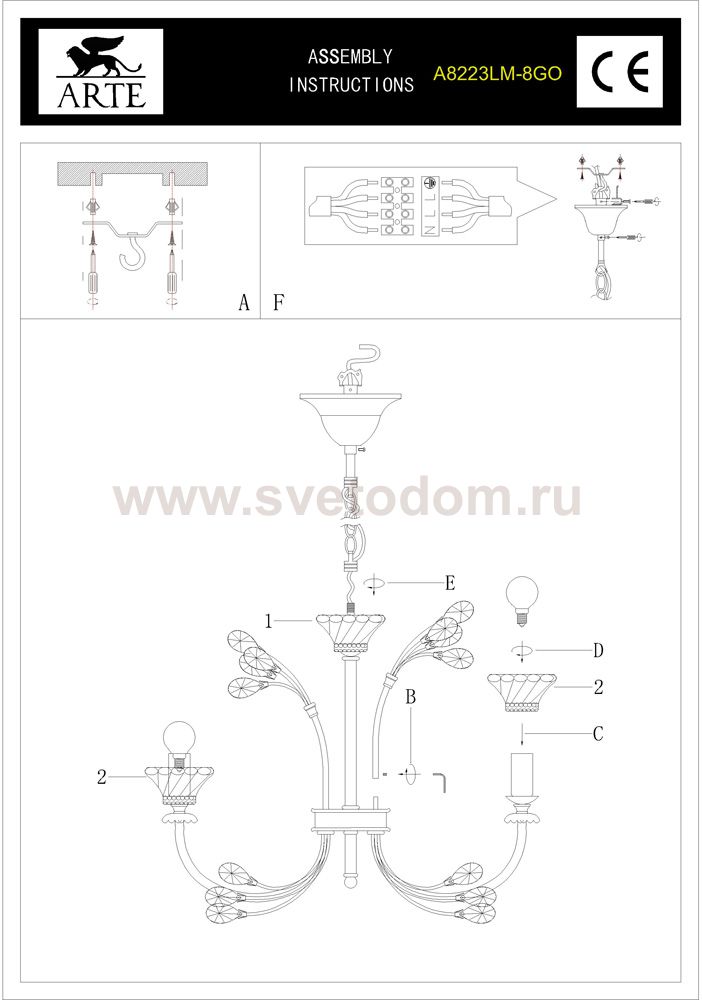 Дополнительно рекомендуем посмотреть другие хрустальные люстры и светильники из данной серии. Модель - Светильник подвесной Arte lamp A8223LM-8GO замечательно впишется в задуманный Вами интерьер зала, гостиной или спальни. Купите хрустальную люстру уже сегодня и Вы поймете превосходство светильников перед другими направлениями освещения. Основное превосходство хрусталя - это отражение и преломление света во всем пространстве, а отсутствие абажуров не съест получаемый световой поток от горящих ламп!