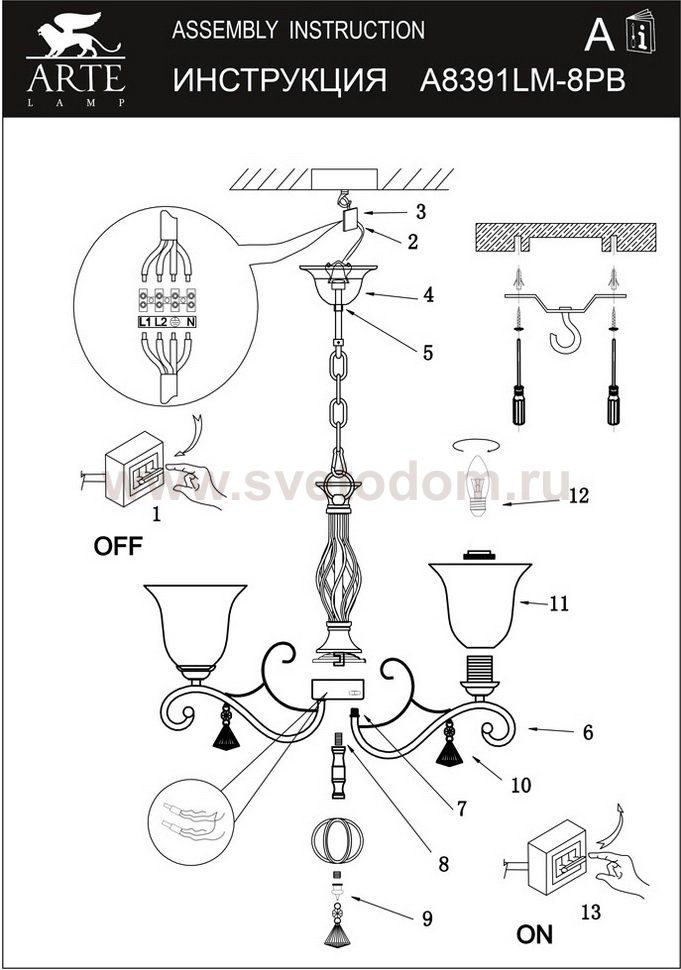 Компания «Светодом» предлагает широкий ассортимент люстр от известных производителей. Представленные в нашем каталоге товары выполнены из современных материалов и обладают отличным качеством. Благодаря широкому ассортименту Вы сможете найти у нас люстру под любой интерьер. Мы предлагаем как классические варианты, так и современные модели, отличающиеся лаконичностью и простотой форм. Стильная люстра Arte lamp A8391LM-8PB станет украшением любого дома. Эта модель от известного производителя не оставит равнодушным ценителей красивых и оригинальных предметов интерьера. Люстра Arte lamp A8391LM-8PB обеспечит равномерное распределение света по всей комнате. При выборе обратите внимание на характеристики, позволяющие приобрести наиболее подходящую модель. Купить понравившуюся люстру по доступной цене Вы можете в интернет-магазине «Светодом».