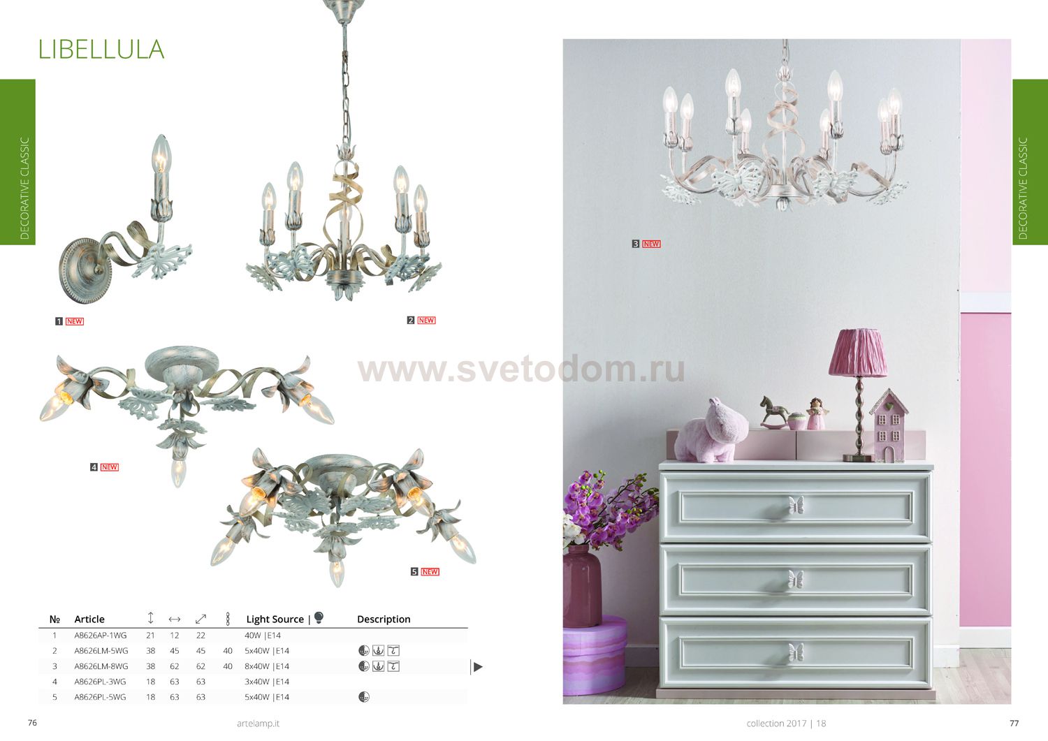 Люстра Arte lamp A8626LM-5WG Libellula сделает Ваше помещение современным, стильным и запоминающимся! Наиболее эстетически привлекательно и функционально модель будет смотреться как в зале, гостевой, холле или другой комнате. А в совокупности с настенными или напольными светильниками из этой же коллекции, сделает интерьер по-дизайнерски законченным и профессиональным.