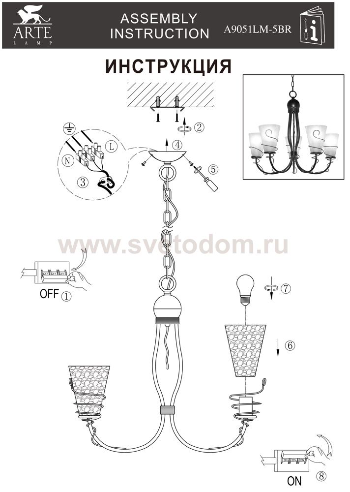 Компания «Светодом» предлагает широкий ассортимент люстр от известных производителей. Представленные в нашем каталоге товары выполнены из современных материалов и обладают отличным качеством. Благодаря широкому ассортименту Вы сможете найти у нас люстру под любой интерьер. Мы предлагаем как классические варианты, так и современные модели, отличающиеся лаконичностью и простотой форм. Стильная люстра Arte lamp A9051LM-5BR станет украшением любого дома. Эта модель от известного производителя не оставит равнодушным ценителей красивых и оригинальных предметов интерьера. Люстра Arte lamp A9051LM-5BR обеспечит равномерное распределение света по всей комнате. При выборе обратите внимание на характеристики, позволяющие приобрести наиболее подходящую модель. Купить понравившуюся люстру по доступной цене Вы можете в интернет-магазине «Светодом».