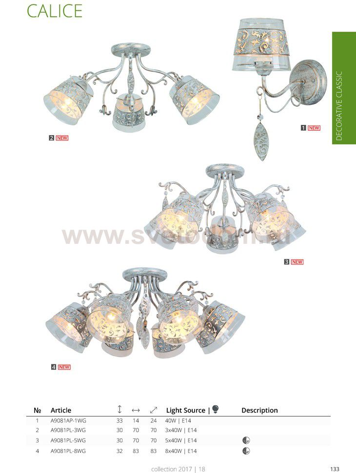 Светильник настенный Arte lamp A9081AP-1WG Calice сделает Ваш интерьер современным, стильным и запоминающимся! Наиболее функционально и эстетически привлекательно модель будет смотреться в гостиной, зале, холле или другой комнате. А в комплекте с люстрой и торшером из этой же коллекции сделает интерьер по-дизайнерски профессиональным и законченным.
