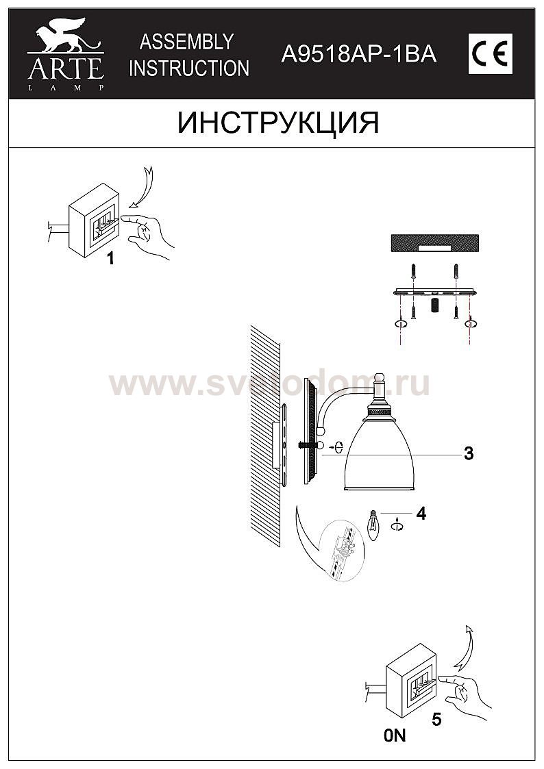 A9518AP-1BA СВЕТИЛЬНИК НАСТЕННЫЙ Комментарий