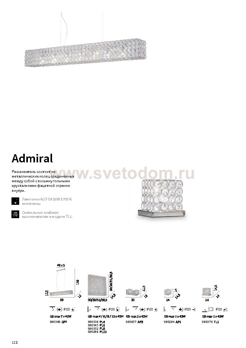 Подвесной светильник от известной итальянской фабрики Ideal lux из каталога Moderno в современном стиле под артикулом ADMIRAL SP7 (80369) серии ADMIRAL имеет ряд отличительных характеристик: Рассеиватель состоит из металлических колец соединённых между собой с восьмиугольными хрусталиками фацетной огранки внутри.