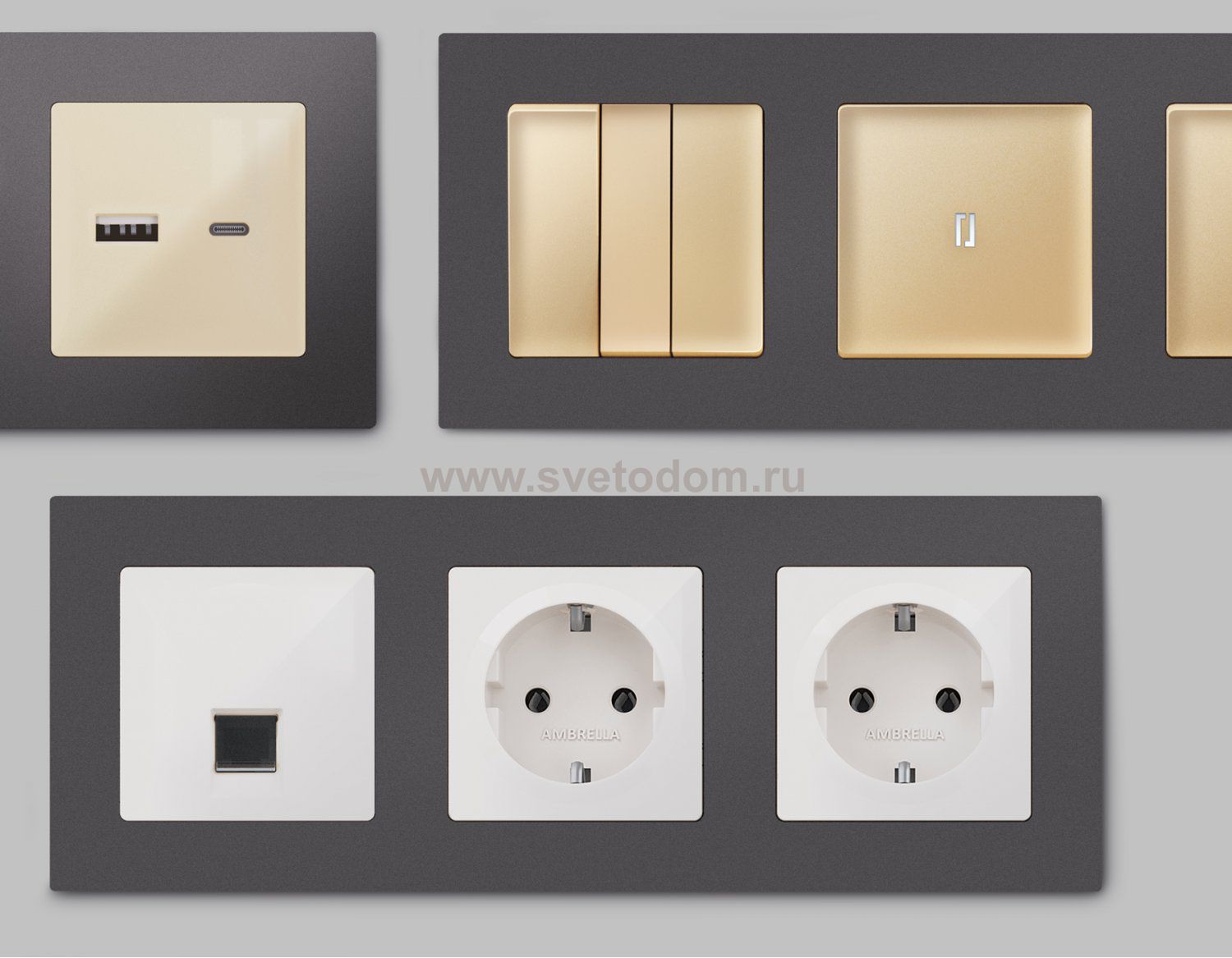 Многогранный ассортимент Ambrella Volt включает в себя механизмы, лицевые панели и рамки, а также комплекты, доступные в различных цветовых решениях. Продукция представлена в модульном исполнении, что позволяет гибко настраивать внешнийвид и функциональность. Вам будет легко заменить лицевую панель, рамку или механизм, найдя идеальное сочетание цветов.