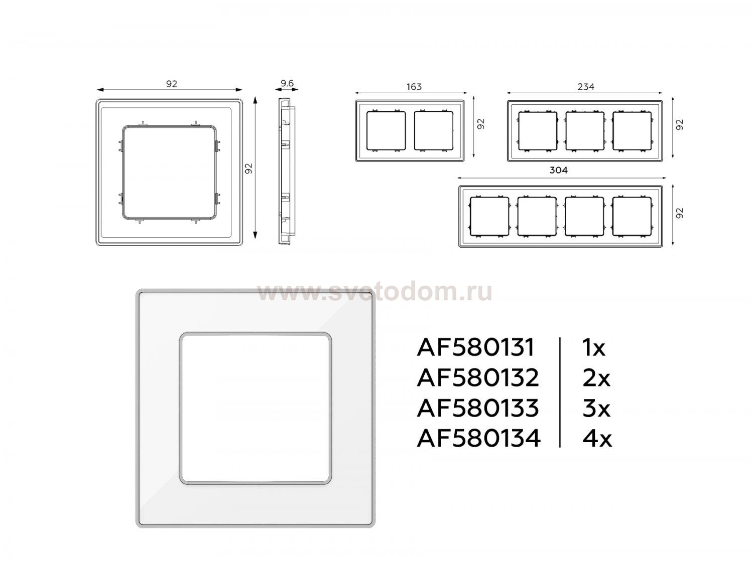 белый стекло органическое, серебро Кол-во гнезд