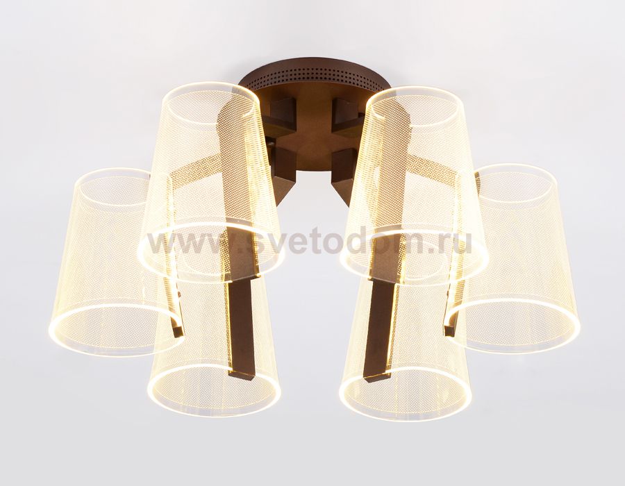Современная потолочная светодиодная люстра коллекции ACRYLICA. Модель AK4033 выполнена в современном стиле неоклассика. Данная модель состоит из шести прозрачных плафонов, все плафоны из акрила на металлическом корпусе, кофейного цвета. Благодаря встроенным в конструкцию светодиодам, вы можете с уверенностью забыть о поиске или замене дополнительных ламп. С помощью радиоуправляемого пульта и мобильного приложения PC.Lamper вы сможете регулировать цветовую температуру, яркость освещения и ночной режим. Эта одель подходит для натяжных потолков и будет прекрасным дополнением в гостиной, спальне или детской комнате.