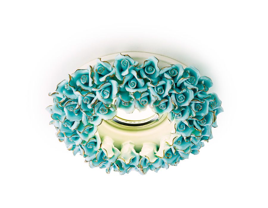 Встраиваемый точечный светильник серии ORGANIC SPOT. Модель D5505BL/G выполнена в современном стиле Фьюжн, формы полусфера. Изготовлен из керамики бирюзового цвета с превосходным цветочным орнаментом, с золотым напылением, и металлического корпуса. Эти модели будут украшением для любого помещения. Для светильников этой коллекции подойдут лампы типа MR16.