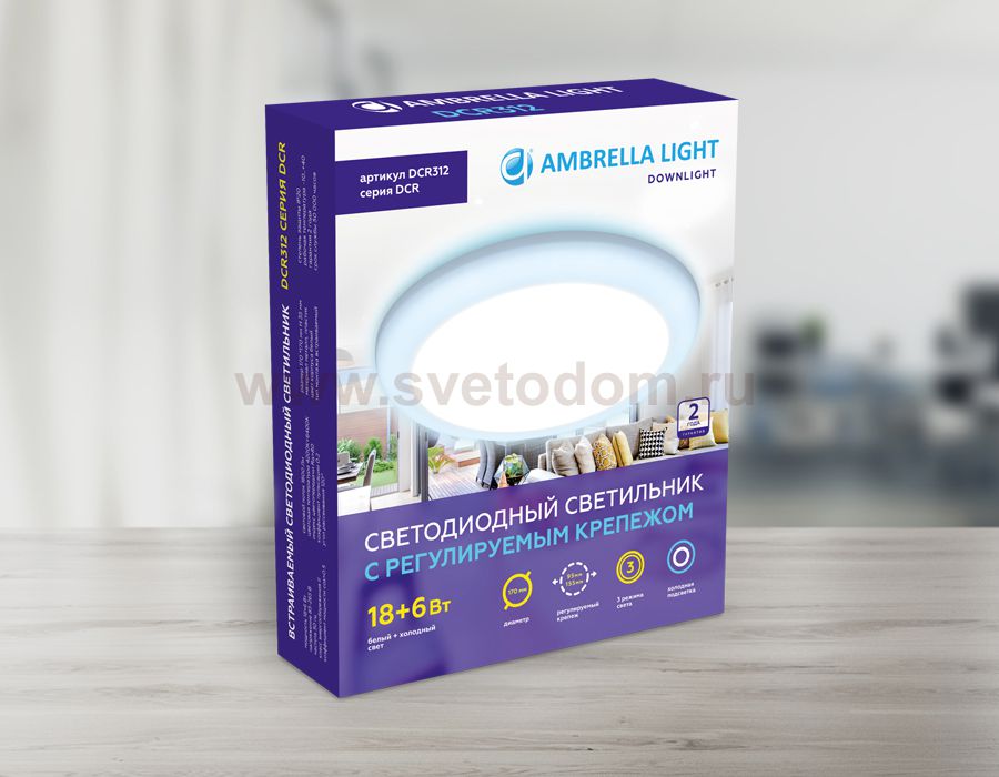 ![]() Светильник ультратонкий Ambrella DCR313 24W+6W 4200K/6400K 85-265V D230*35 (A110-200) DOWNLIGHT 1960 руб.