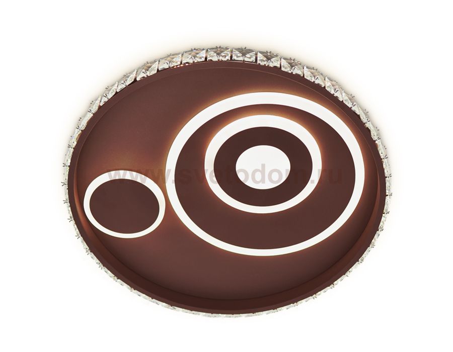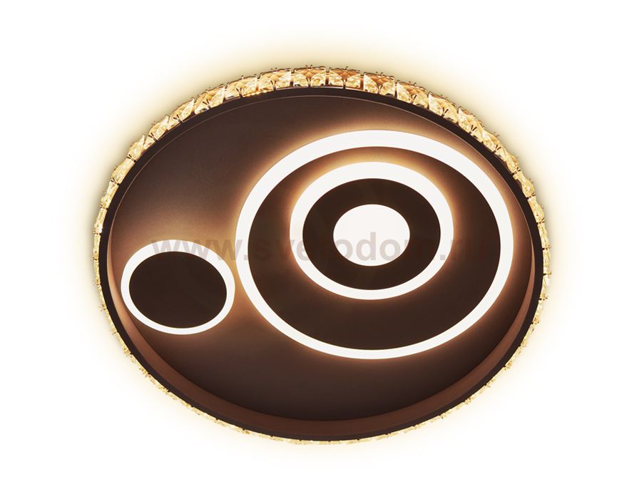 Потолочный светодиодный светильник из серии ACRYLICA, коллекция Ice. Великолепная модель FA245 выполнена в современном стиле Неоклассика. Бесподобный хрустальный декор придает особый шик светильникам этой коллекции. Эта модель круглой формы, кофейного цвета, с окантовкой из акрила и металлического корпуса. Благодаря встроенным в конструкцию светодиодам, вы можете с уверенностью забыть о поиске или замене дополнительных ламп. С помощью радиоуправляемого пульта вы сможете регулировать цветовую температуру, яркость освещения и ночной режим. Модель FA245 подходит для натяжных потолков и будет прекрасным дополнением в гостиной, спальне или детской комнате.
