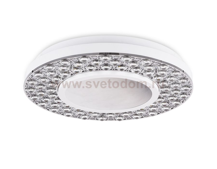 Потолочный светодиодный светильник из коллекции ACRYLICA Ice. Великолепная модель FA9448 выполнена в современном стиле Неоклассика. Бесподобный хрустальный декор придает особый шик светильникам этой коллекции. Эта модель круглой формы, металлический корпус цвета хром, с окантовкой из белого акрила. Благодаря встроенным в конструкцию светодиодам, вы можете с уверенностью забыть о поиске или замене дополнительных ламп. С помощью мобильного приложения, а так же радиоуправляемого пульта вы сможете регулировать цветовую температуру, яркость освещения и ночной режим. Эта модель подходит для натяжных потолков и будет прекрасным дополнением в гостиной, спальне или детской комнате.