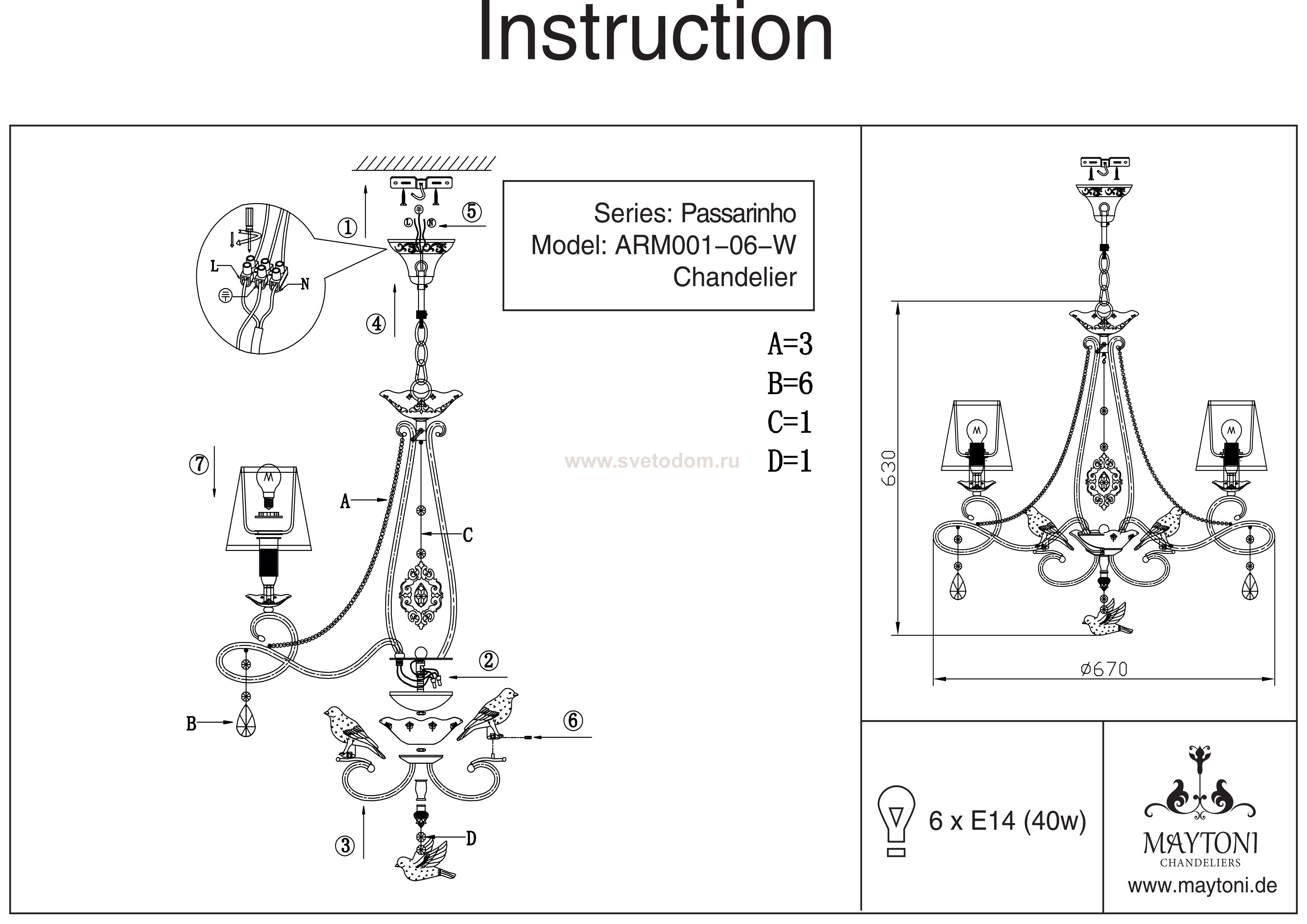 Особенности модели ARM001-06-W: Утонченная серия светильников, выполненных в классическом стиле, добавит свежести и легкости в интерьер. Металлический каркас белого цвета декорирован миниатюрными фигурками птиц. Конструкцию украшают подвески из кристаллов. Лампочки скрываются за абажурами из белой органзы. Высота люстр регулируется длиной цепи. |