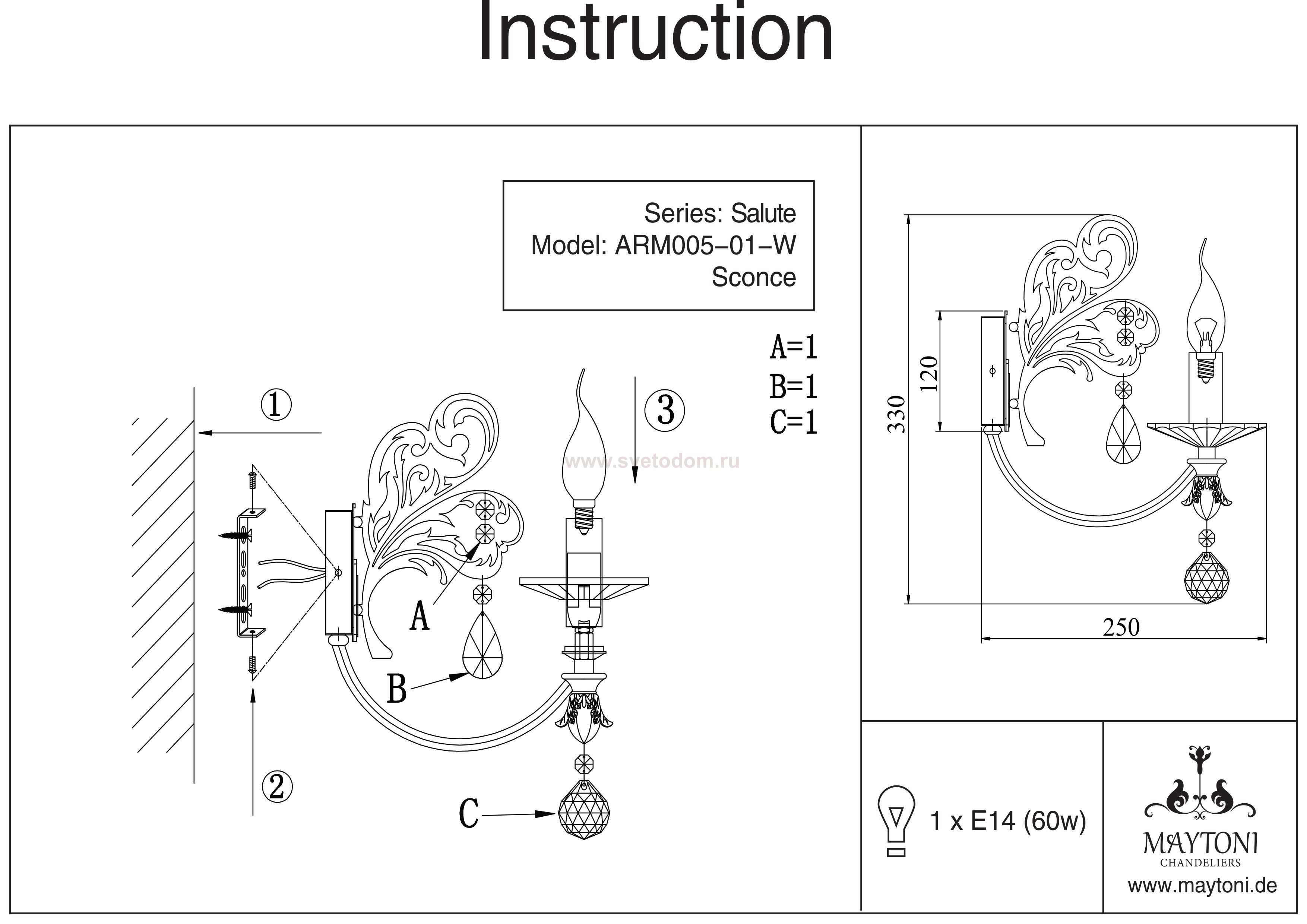 Особенности модели ARM005-01-W: Арматура из металла. Подвески и подсвечники из *хрусталя.