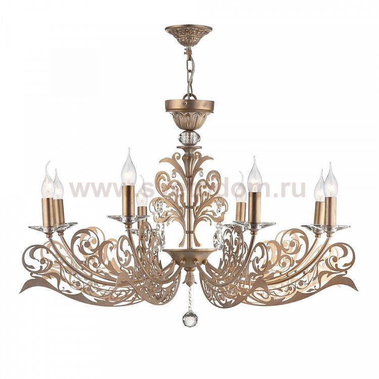 Античное золото и блеск хрусталя привлекают внимание всех без исключения. Модель люстры ARM005-08-G Salute воплотила в себе все самое изысканное и привлекательное, это переливающие подвески из хрусталя и завитки в стиле барокко. Лампы «свеча на ветру» отлично подходит к люстре. Все грани подвесок изготавливались вручную технологами компании Maytoni. Производитель Maytoni рекомендует использовать для устройства 8 ламп накаливания с цоколем E14. Осветительный прибор произведен с использованием материала: арматура из металла, подвески из хрусталя. Для покупки устройства просто нажмите кнопку «добавить в корзину» или свяжитесь с нашими менеджерами по указанным на сайте номерам. Мы доставляем заказы по Москве, Екатеринбургу и другим российским городам. |