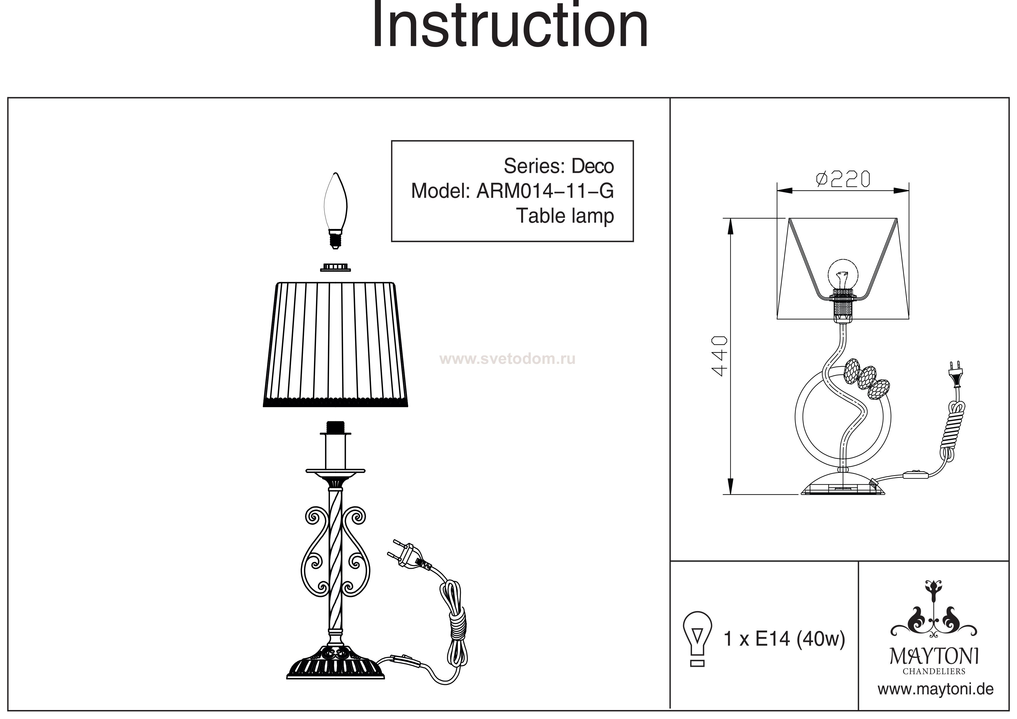 Настольные лампы являются не только удобным осветительным прибором, но еще и эффектным декоративным элементом. Посмотрев на фото прибора от компании Майтони, расположенное рядом с описанием и ценой, вы совершенно точно захотите купить его. Настольная лампа Maytoni ARM014-11-G представлена небольшой арматурой цвета «белое золото» и полупрозрачным плафоном. Эта часть лампы от Maytoni имеет форму усеченного конуса. От выпуклой подставки вверх тянется тонкая ножка под плафон. На ней располагаются разнообразные украшения в виде шариков. Благодаря небольшой стоимости |