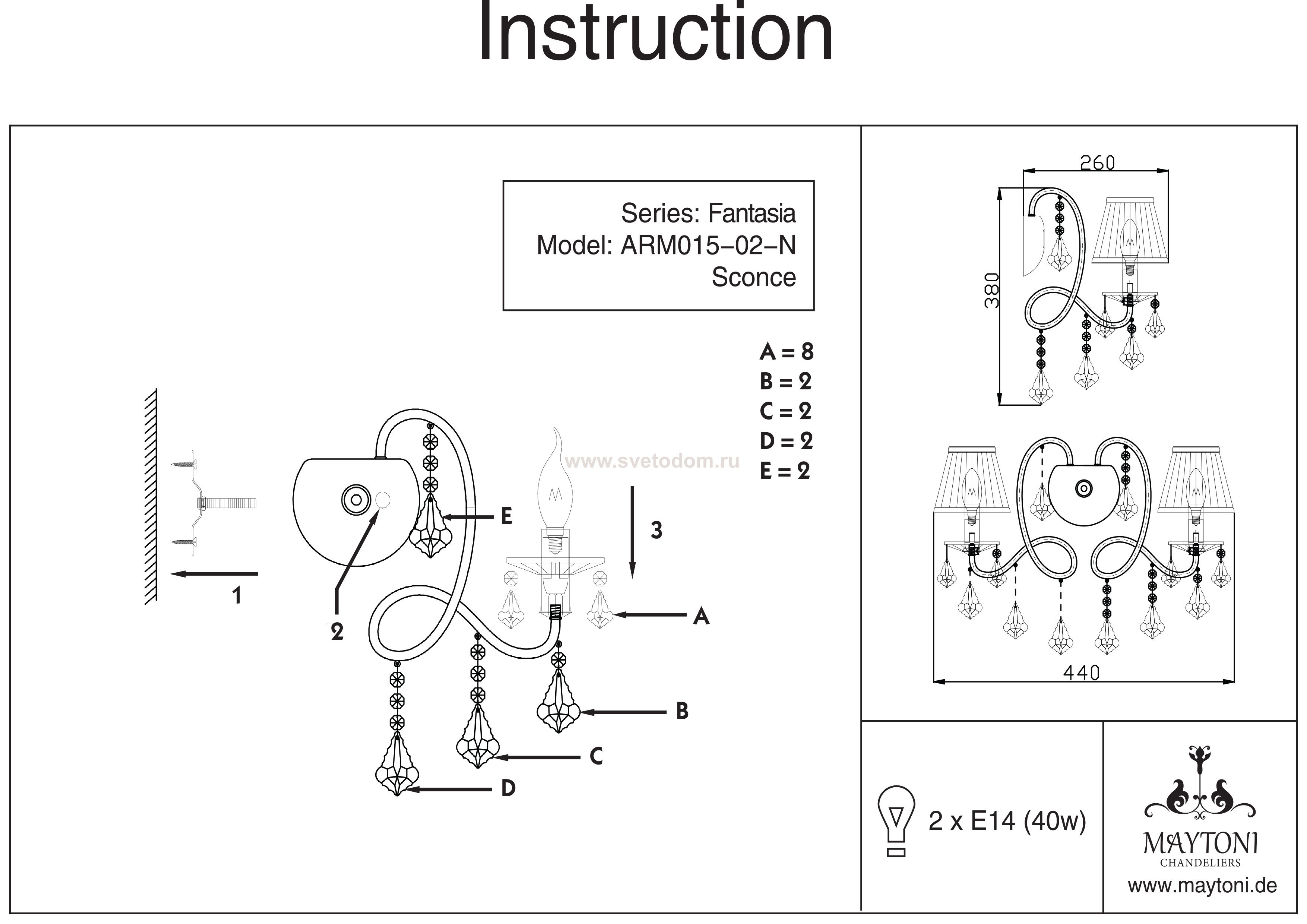 Стоит единожды взглянуть на фото этой хрустального бра, и вы поймете, что это изделие достойно того, чтобы находиться в вашем помещении. В данном устройстве от Maytoni очаровательно все без исключения: и плафоны, и штанги, и декоративные элементы, и даже монтажная пластина. Но давайте рассмотрим хрустальное бра Maytoni Elegant ARM015-02-N более подробно. Итак, конструкция прибора состоит из двух плафонов, оформленных кремовым текстилем. Установлены плафоны на хрустальные подставки типа подсвечников. Штанги, на которых крепятся плафоны, выполненные из металлических прутьев никелевого цвета, изящно между собой переплетены. Монтажная пластина, скрывающая электрическую проводку, выполнена в оном стиле со штангами. Особую ценность изделию придают восхитительные хрустальные подвески. Если вы хотите действительно оригинально украсить свою комнату, покупайте эту модель от Майтони прямо сейчас. Следует отметить, качество устройства вполне соответствует своей стоимости. |