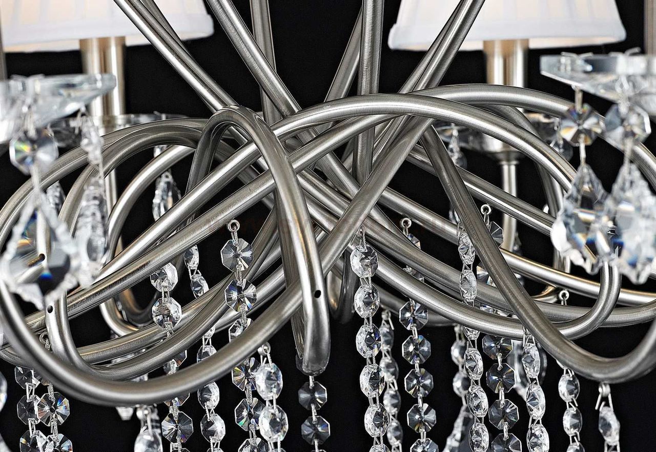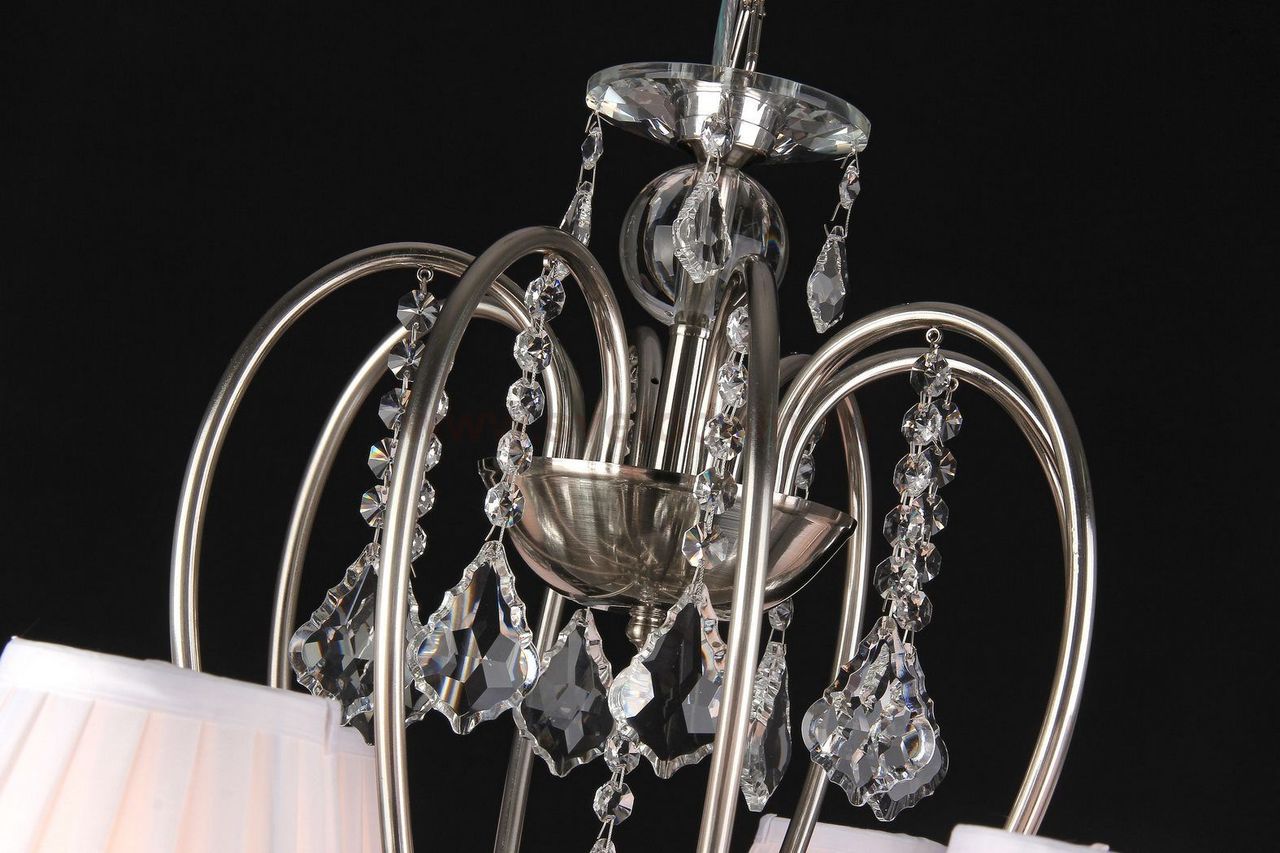 Представленная модель хрустальной люстры от компании Maytoni станет достойным украшением комнаты, оформленной в классическом стиле или в стиле барокко. Рассматривая фото, вы увидите грандиозную конструкцию, состоящую из восьми удивительных плафонов. Все плафоны сделаны по типу свечей на подсвечниках. В то же время их дизайн исполнен в духе традиционных торшерных плафонов. Обтянутые легкой тканью кремового цвета они установлены на стойки, которые оригинально переплетаются между собой. Арматура хрустальной люстры Maytoni Elegant ARM015-08-N выполнена в благородном никелевом цвете. Еще одна характерная особенность прибора — множество хрустальных подвесок, делающих общий вид люстры завершенным и органичным. Данное изделие работает от лампочек мощность. 40 ватт: в стоимость изделия они не входят, поэтому не забудьте купить их дополнительно. Потолочная люстра от Майтони — это восхитительный дизайн, надежное качество и справедливая цена. |