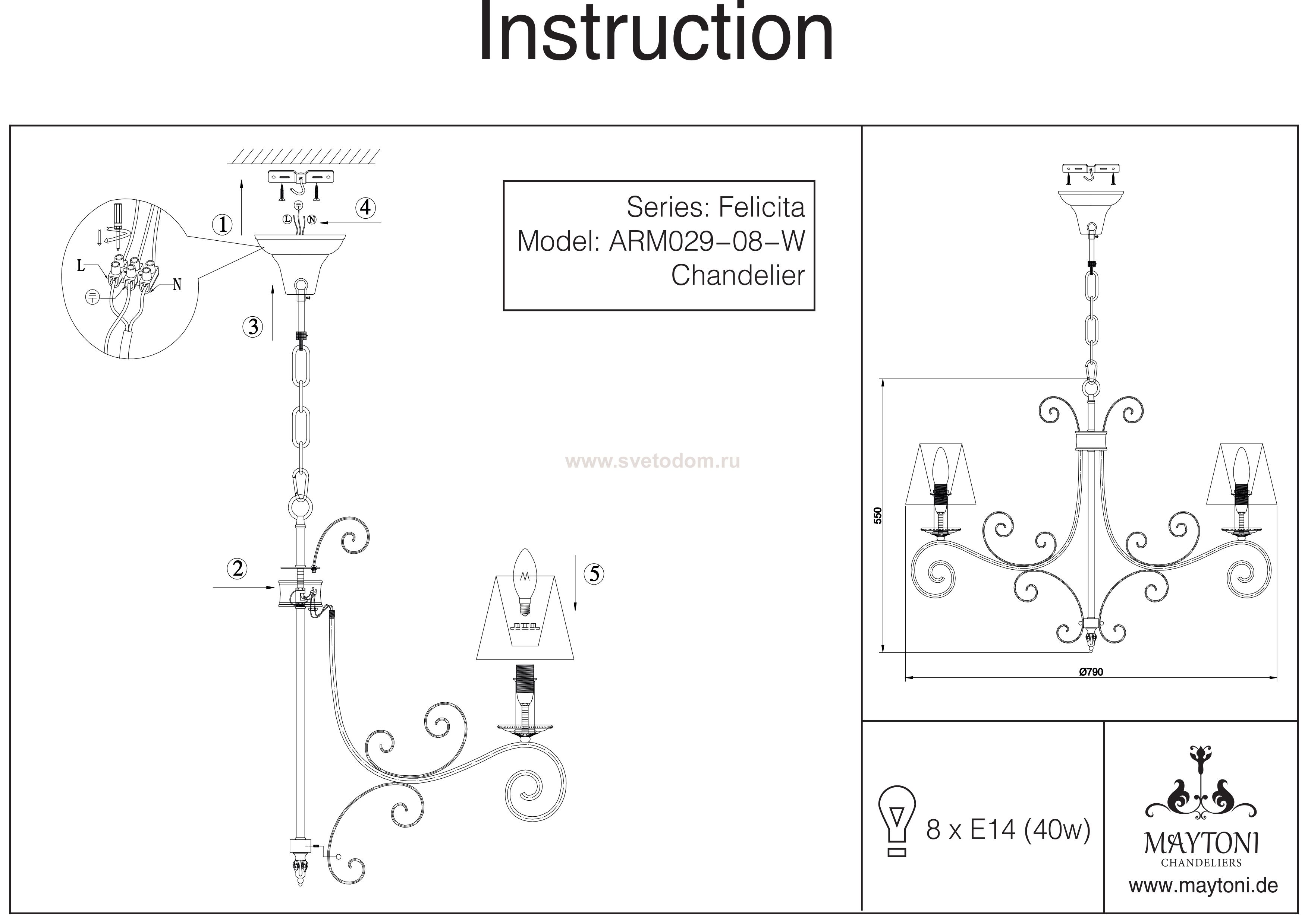 Люстра Maytoni ARM029-08-W Felicita на протяжении многих лет притягивает к себе искушенных дизайнеров и клиентов, обустраивающих квартиру или загородный дом, а также офисные или общественные места. Благодаря эстетической тонкости и технической проработанности германская модель ARM029-08-W популярна в онлайн продажах на сайте и в наших "земных" магазинах сети Светодом.