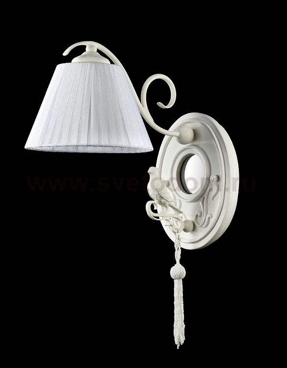Бра Elegant ARM031-01-W из изысканной коллекции Cella – не только осветительный прибор, но и изящный предмет интерьера, который идеально впишется в пространство, решенное в духе прованса или ар-деко. Белое матовое покрытие металлической арматуры выгодно подчеркивает интересные формы элементов декора. Птица из полирезина, круглое зеркальце, кисть из бисера и задрапированный текстильный абажур создают ощущение домашнего уюта и покоя. Представленный на фото настенный светильник ARM031-01-W от немецкого бренда Maytoni рассчитан на освещение площади 2,2 кв. м |