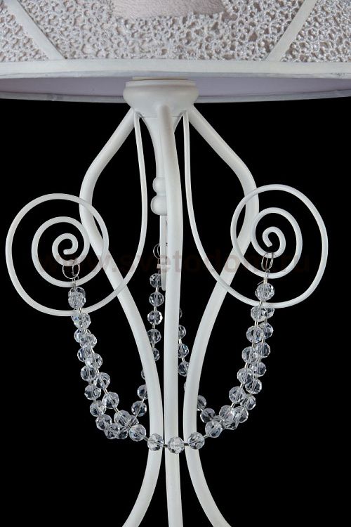 Арматура из металла. Абажур из ПВХ покрыт атласом и украшен кружевом. Подвески в виде бусин из стекла. Дополнительно