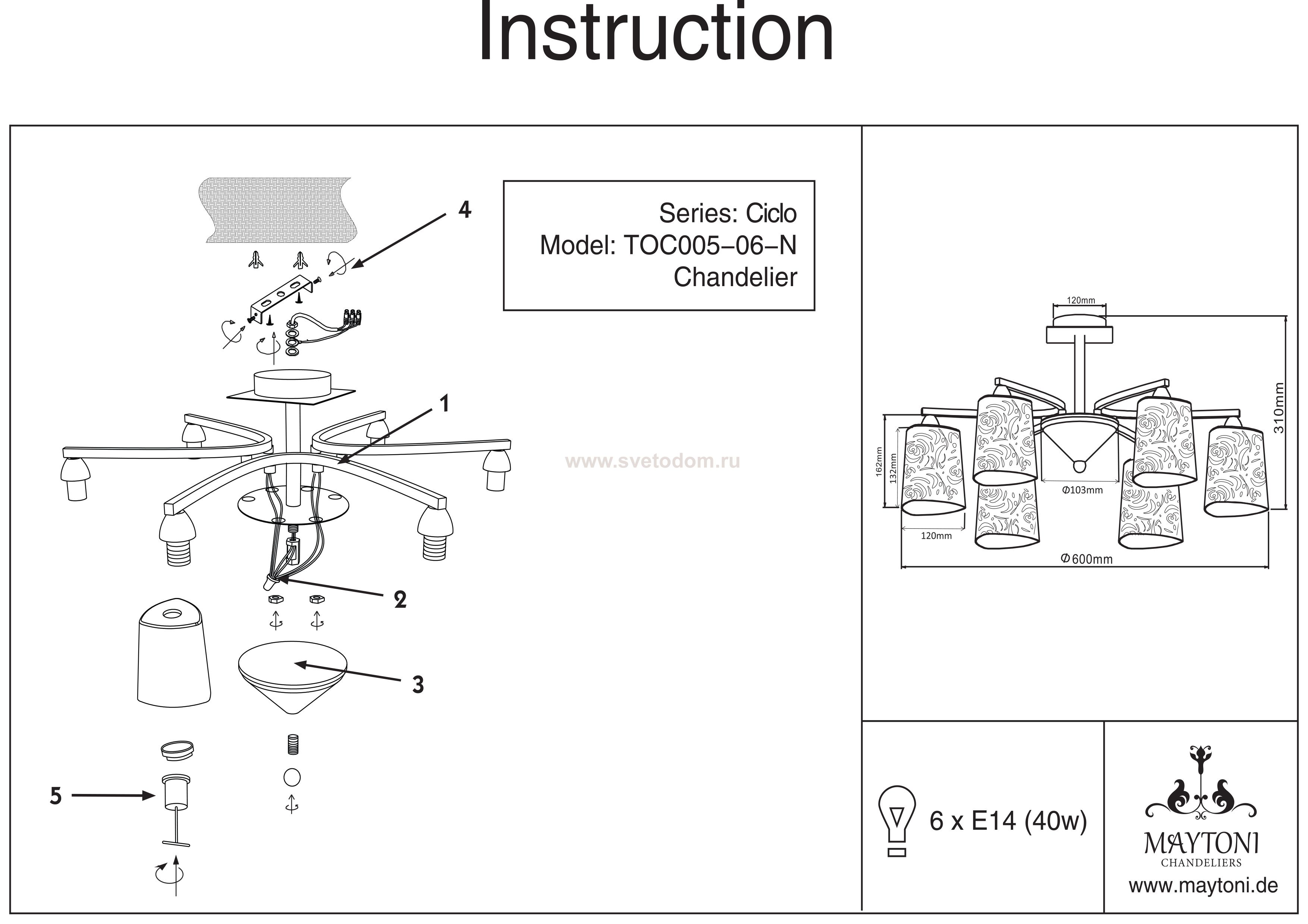 Максимальная потребляемая мощность лампы, которую можно использовать в люстре.