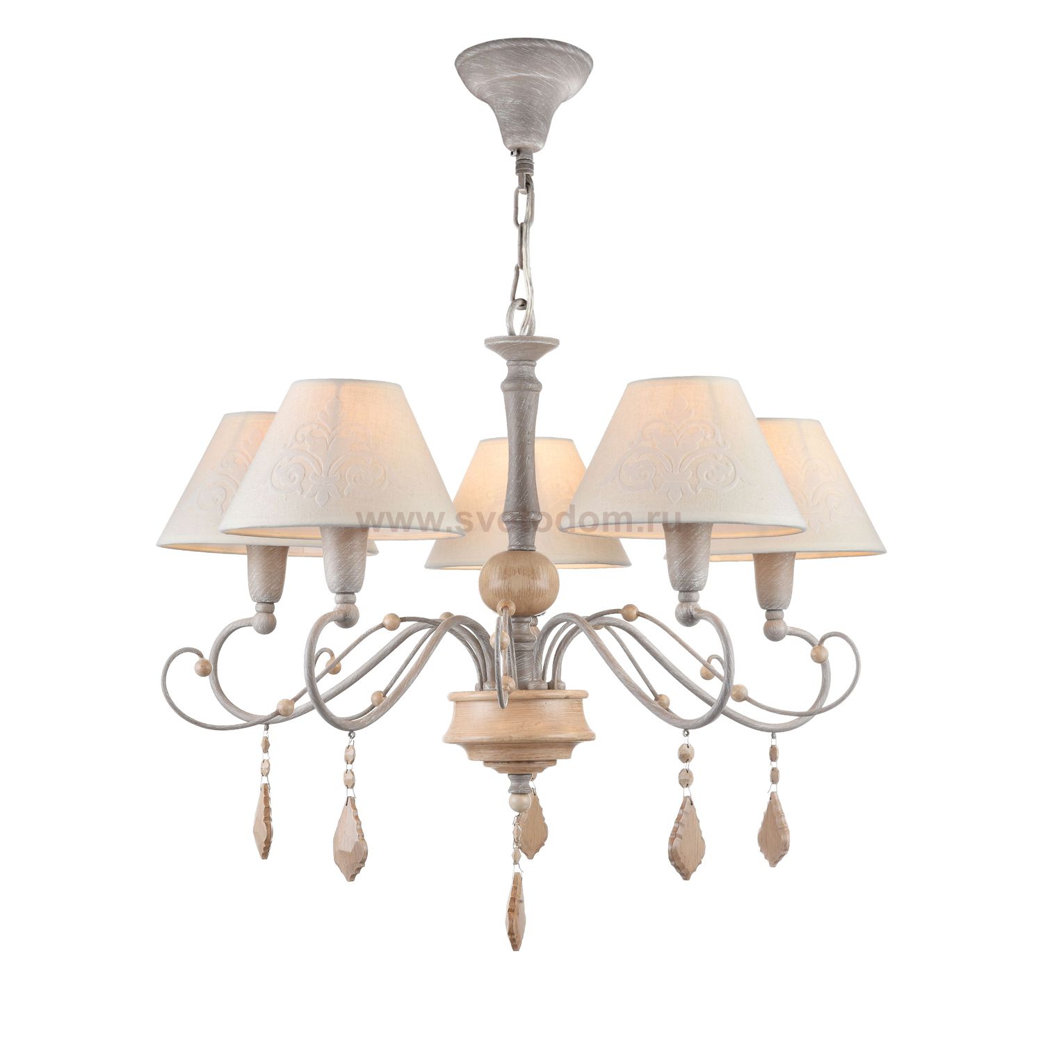 Особенности модели ARM132-PL-05-GR: Арматура из металла. Подвески из окрашенного *хрусталя. Абажур из ПВХ покрыт тканью с рельефным узором.
