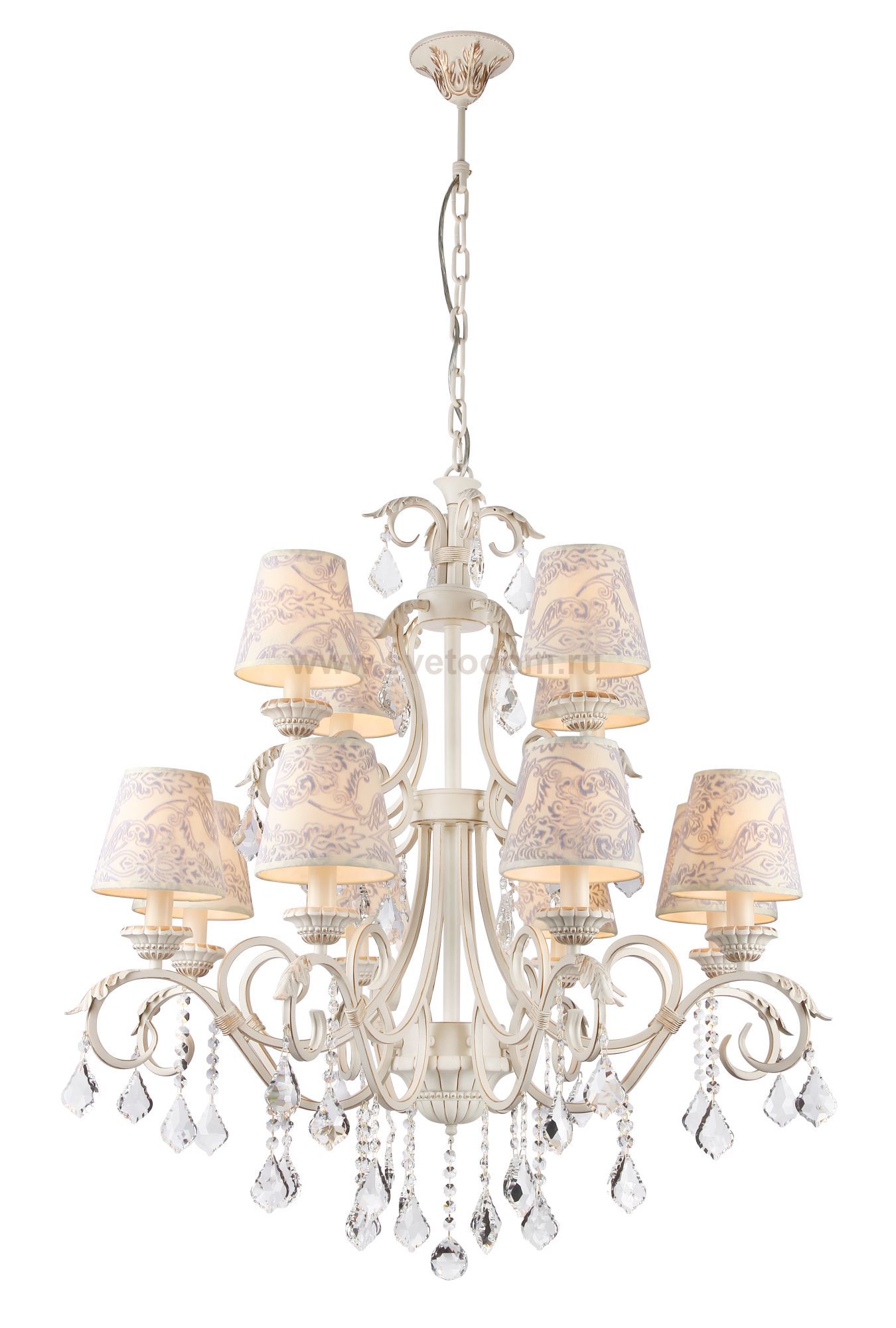 У изображенной на фото подвесной люстры Maytoni ARM219-12-G в стиле барокко, 12 светлых плафонов из ткани, на которые нанесён рисунок. Общая мощность ламп этой великолепной подвесной люстры от компании Майтони составляет 480 ватт. Наверняка, купить по приемлемой цене такую большую и яркую люстру имеет смысл только в просторную комнату, где нужно много света. Арматура светильника изготовлена из металла и окрашена в цвет кремового золота и украшена подвесками из хрусталя. Стоимость подвесной люстры определена высоким качеством сборки светильника и известностью фирмы изготовителя Maytoni. |