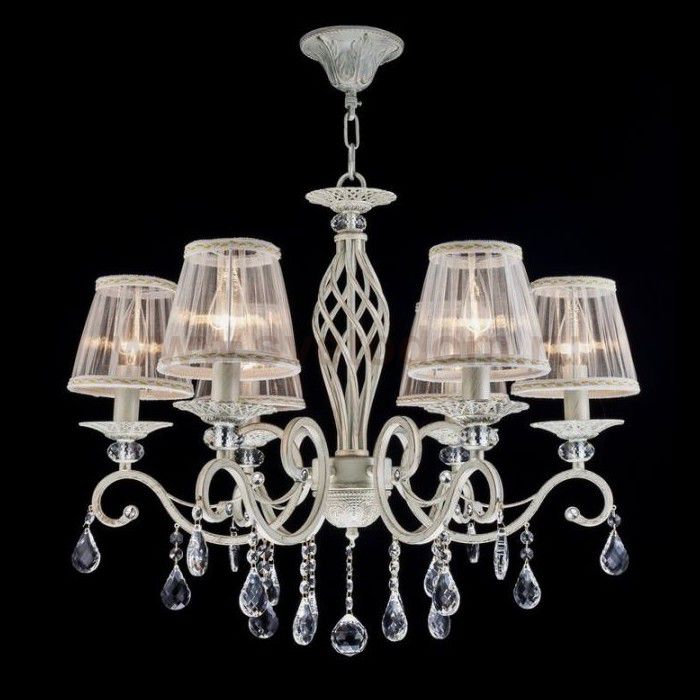Металлическая арматура, оттенки – латунь, белый с золотом. Модели с открытыми источниками света и с абажурами. Абажуры из органзы, оттенки – бежевый, белый. Закрученный по спирали декор центральной оси. Подвески из кристаллов. - Высота люстр регулируется. Источник света - лампа с цоколем Е14.