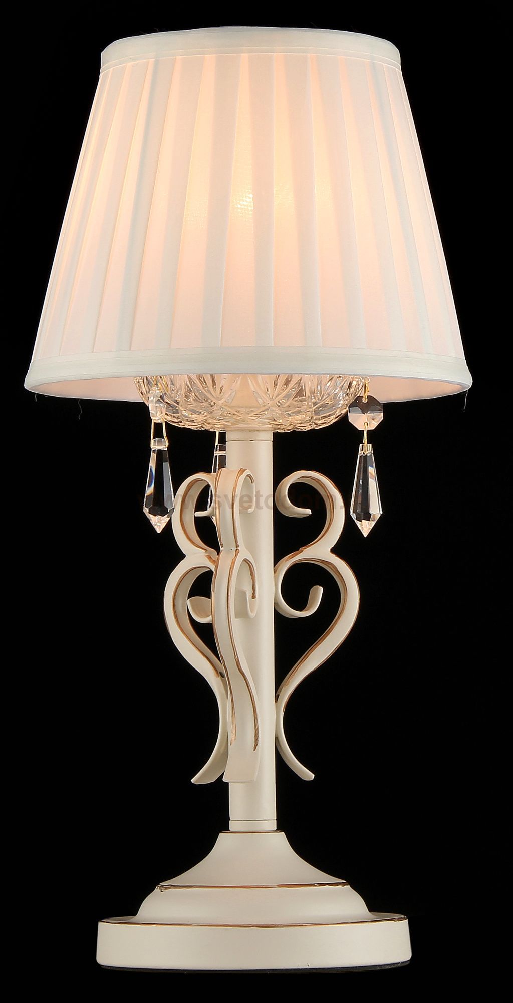 Арматура из металла. Абажур из плиссированного атласа. Подвески из *хрусталя. Комментарий