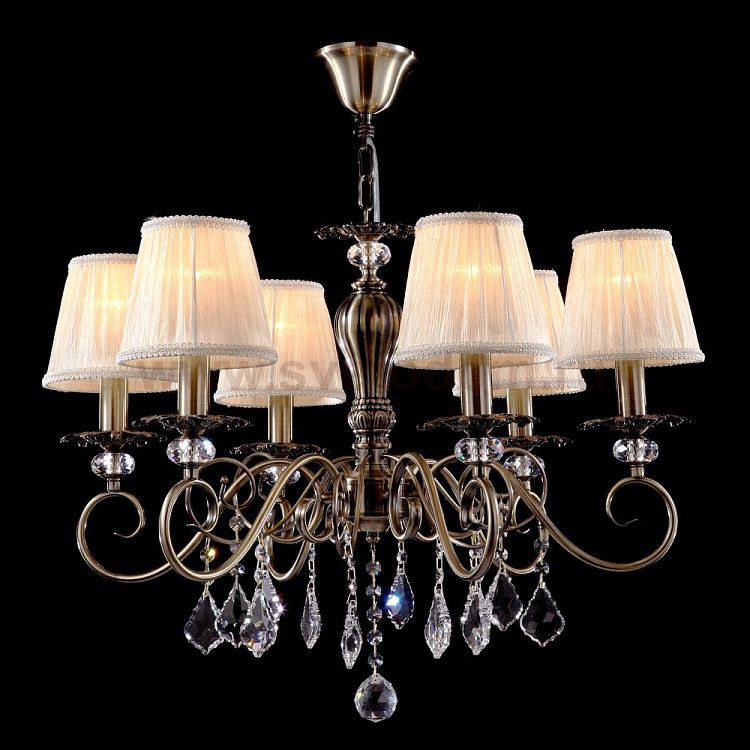 Арматура из металла. Абажуры из плиссированной органзы с тесьмой. Подвески из *хрусталя. Комментарий